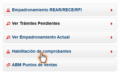 Vas a tener que ingresar con CUIT y Clave Fiscal a la página web de ARCA e ingresar al servicio “Regímenes de Facturación y Registración (REAR/RECE/RFI)” y seleccionar la opción “Habilitación de Comprobantes”.